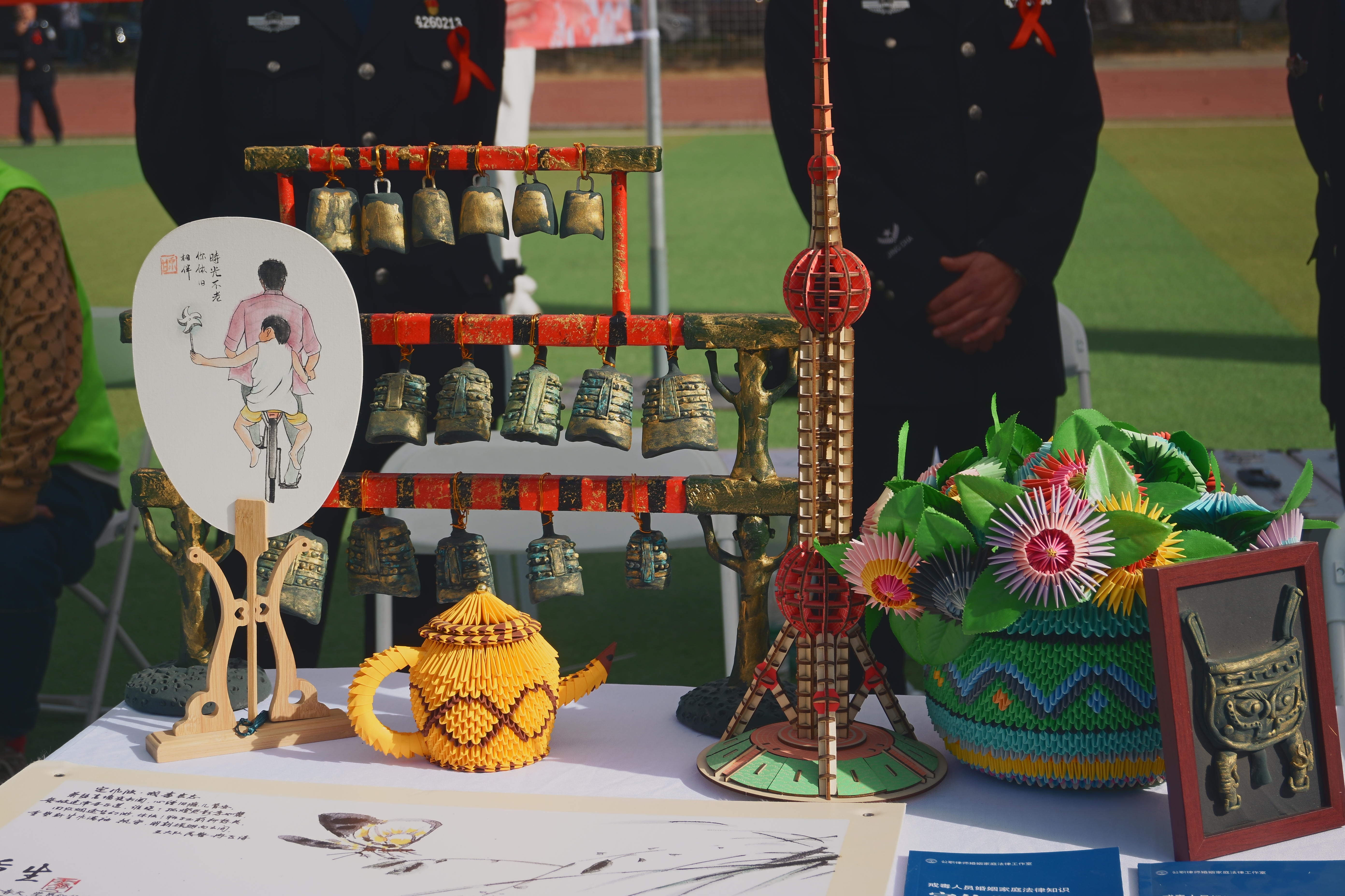 在另一侧展台,几件精美的雕塑和绘画作品引人驻足。湖北省狮子山强制隔离戒毒所国资办主任李运宏介绍,这些作品均出自戒毒所艾滋病学员之手,它们不仅是艺术品,更是艾滋病患者重获新生的见证。他表示,希望通过展示,让大学生深刻认识到毒品与艾滋病的危害。