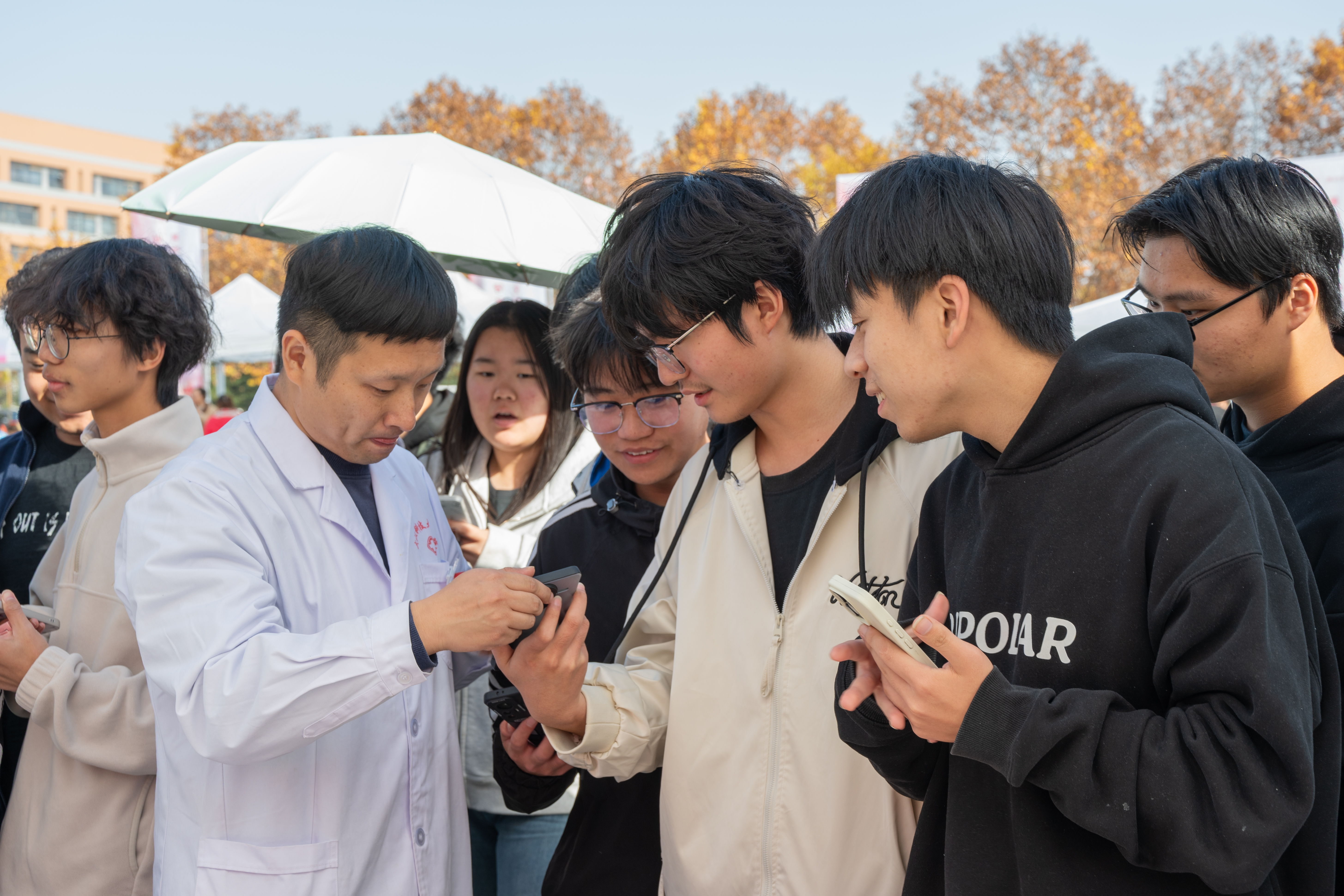 在义诊专区,一台特殊的机器吸引了众人目光。“这是无人自动检测机,我们可以像取饮料一样自助领取检测包,全程免费且高度私密。”武汉科技大学医院副院长吴钒向参观师生介绍,这一举措极大降低了学生的主动检测门槛。