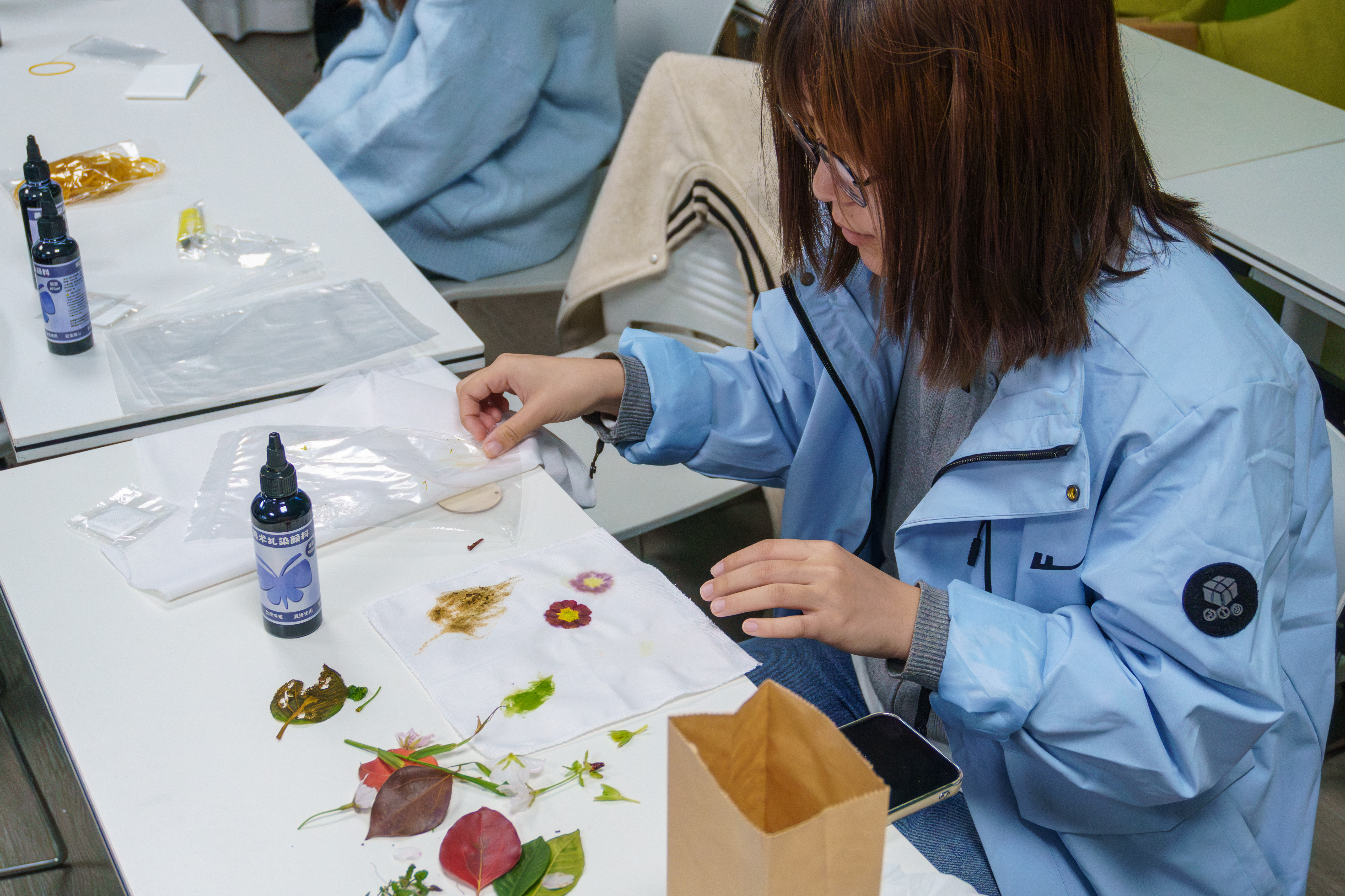 “这是我第一次尝试植物拓染,看着新鲜的植物汁液在布料上晕开,整个过程特别治愈。”在该校外国语学院举办的“布里生花,染韵匠心”活动中,学生刘赢一边均匀地敲打着植物,一边兴奋地分享。