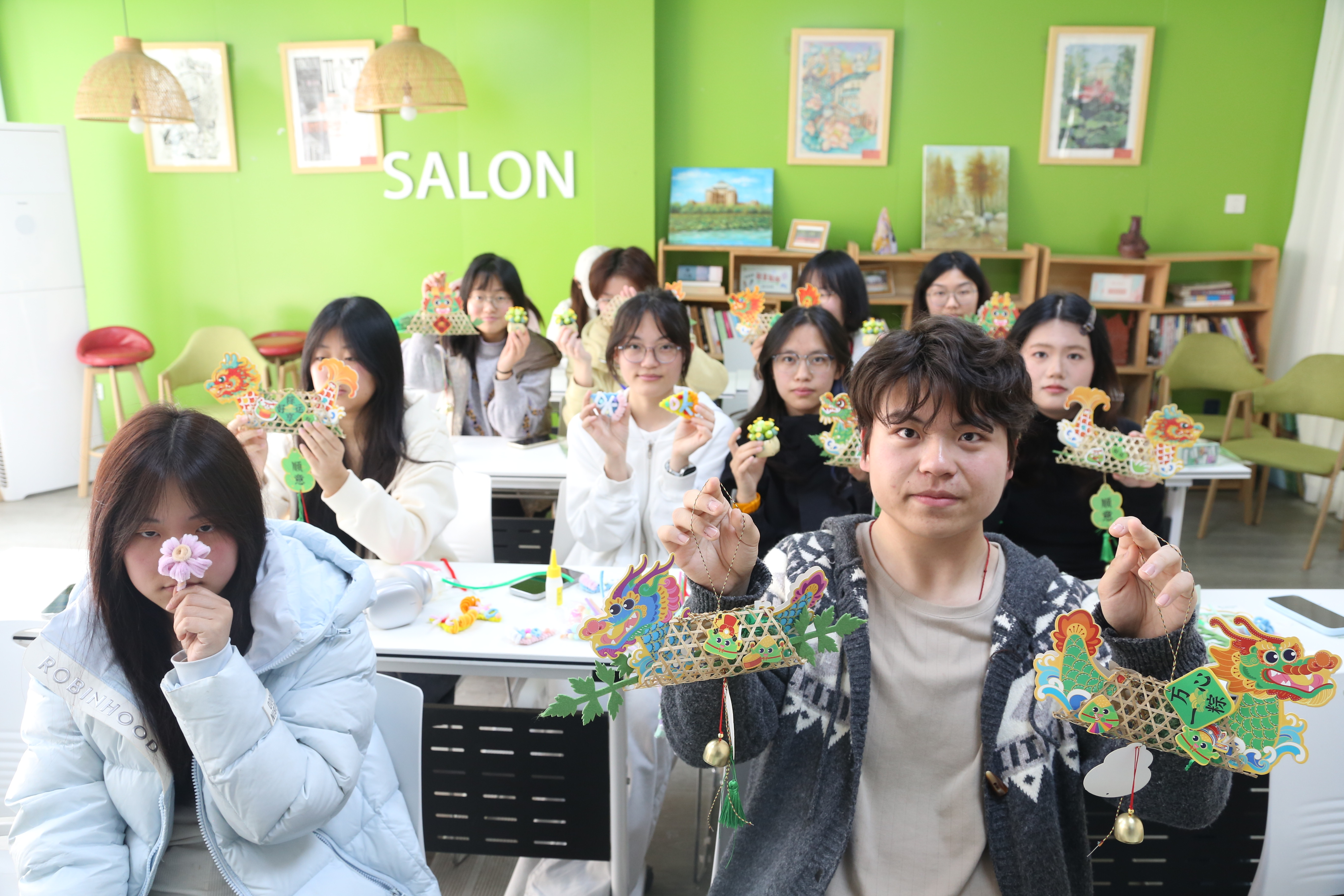 “刚开始总掌握不好挑丝力度,但在反复尝试中,看着零散的竹丝变成灵动的龙舟,特别有成就感。”信息管理与信息系统专业学生刘一恒捧着作品感慨,这项需要全神贯注的传统手艺,成了剥离焦虑、沉淀内心的绝佳方式。