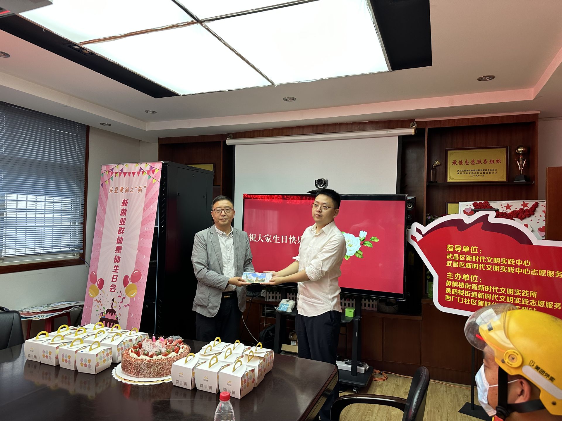为进一步满足新就业群体对精神文化生活的需求,切实增强新就业群体的获得感、幸福感、安全感,近日,武汉市武昌区黄鹤楼街道西厂口社区联合辖区共建单位交通银行解放路支行、黄鹤楼公园开展“岁月不负 温暖同行”新就业群体集体生日会活动。
