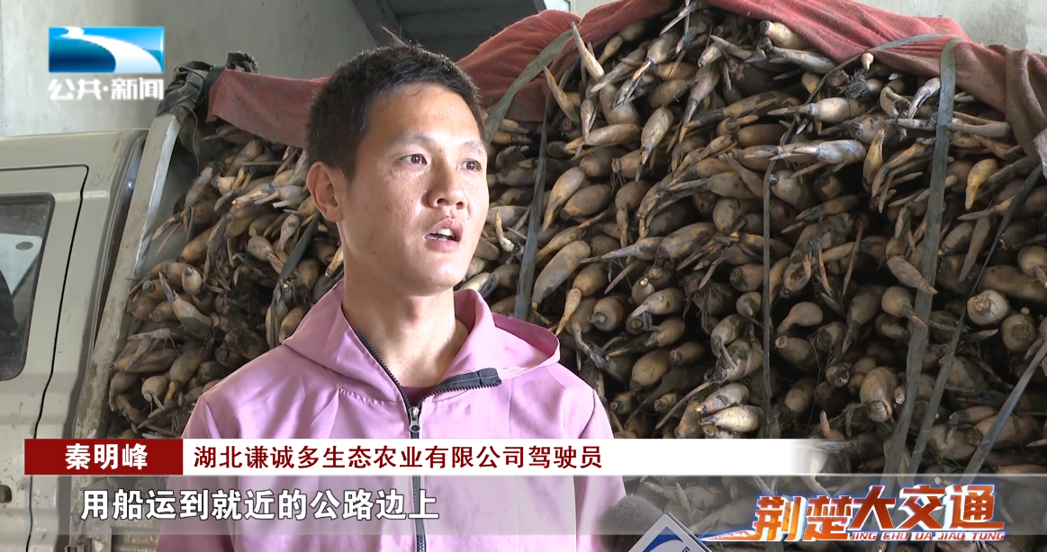 湖北谦诚多生态农业有限公司驾驶员 秦明峰:“以前都是用船,用船运到就近的公路边上,光用船运都要一个小时以上。现在公路往湖区延伸了,现在我们只需要用船过渡一下,每斤的运费大概要节省两毛钱左右,时间节约三分之一到一倍。”