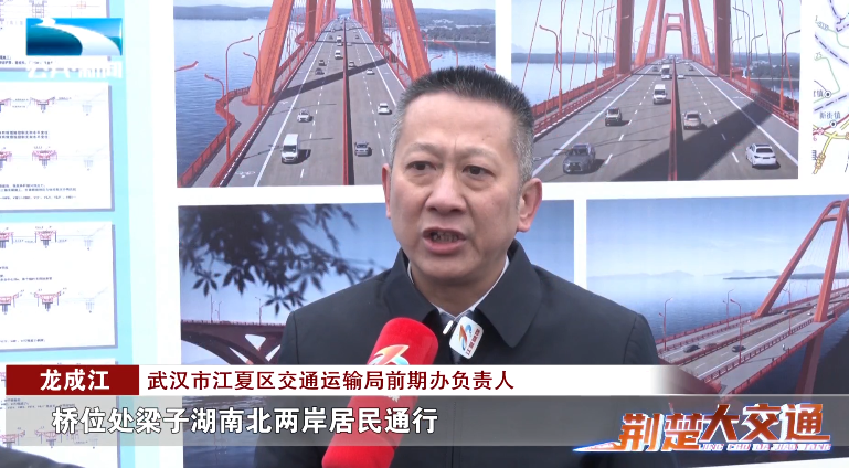武汉市江夏区交通运输局前期办负责人 龙成江:“项目建成后,梁子湖南北两岸居民通行,将由原本绕行1个小时缩短为2分钟直达。”