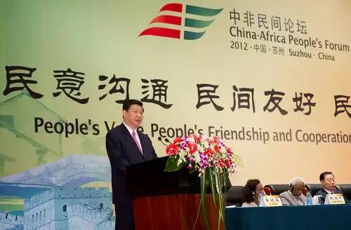 图为:2012年7月10日,国家副主席习近平在苏州出席第二届中非民间论坛开幕式,并以“推进中非新型战略伙伴关系新发展”为题发表主旨讲话。