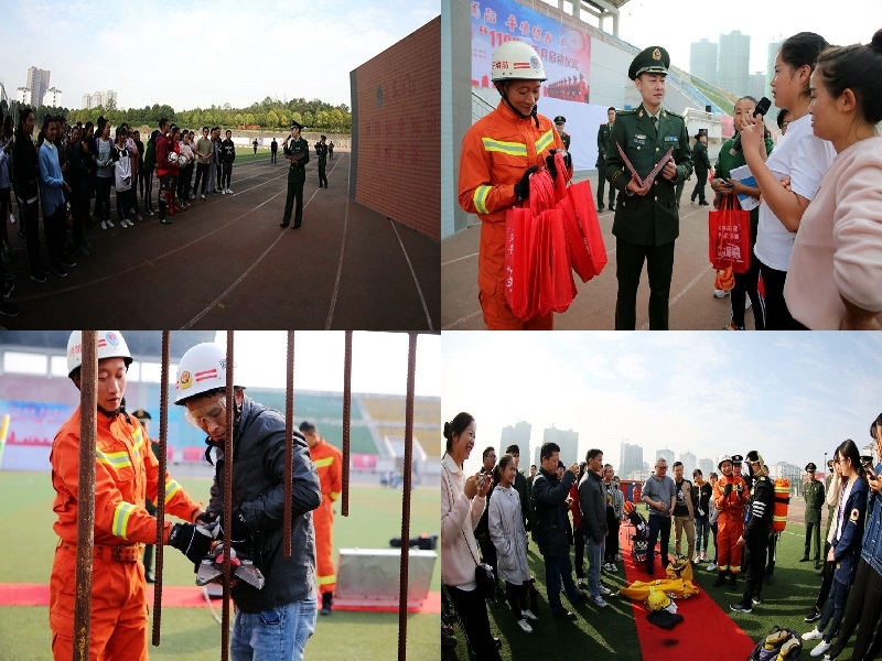 启动仪式后,胡甲文副市长参观了“全民消防我代言”展示牌,并来到消防装备器材演示区,与现场群众一道观摩了消防装备演示,细心地询问器材的功能用途,详细地了解消防部队近年来器材装备建设方面的革新和进步。部分社会单位负责人及楼栋长、学生在消防官兵的指导下还体验了救援器材使用和消防服装穿戴,学生们在消防官兵的引导下,用手捂住口鼻,躬着身子体验逃生帐篷,同时也将整个活动推向了高潮。