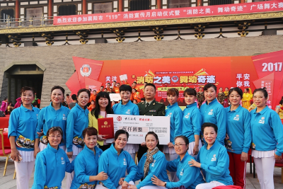 11月7日上午,襄阳市在唐城影视基地举行“119”消防宣传月启动仪式暨“消防之美舞动奇迹”消防广场舞大赛,市委常委、公安局长杨彪,市政府办公室副主任冯晓濮,市公安局副局长田玉生,消防支队支队长马一兵,省文化厅大型活动中心书记李华山,省群艺馆国家一级导演向雪方等领导,广场舞大赛参赛队员、亲友团,消防官兵、火灾高危单位、消防安全重点单位和新闻媒体记者代表3000余人参加了启动仪式。