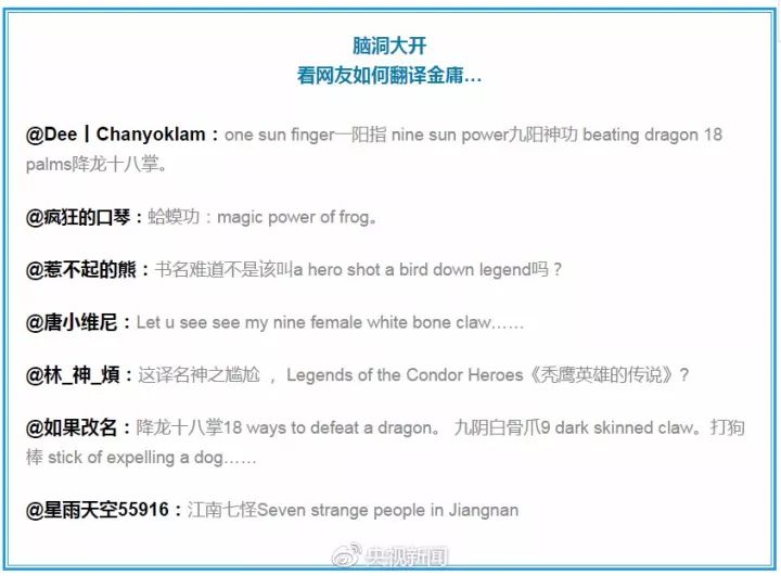 金庸作品在华语世界非常流行,但是翻成英文实在太难了。