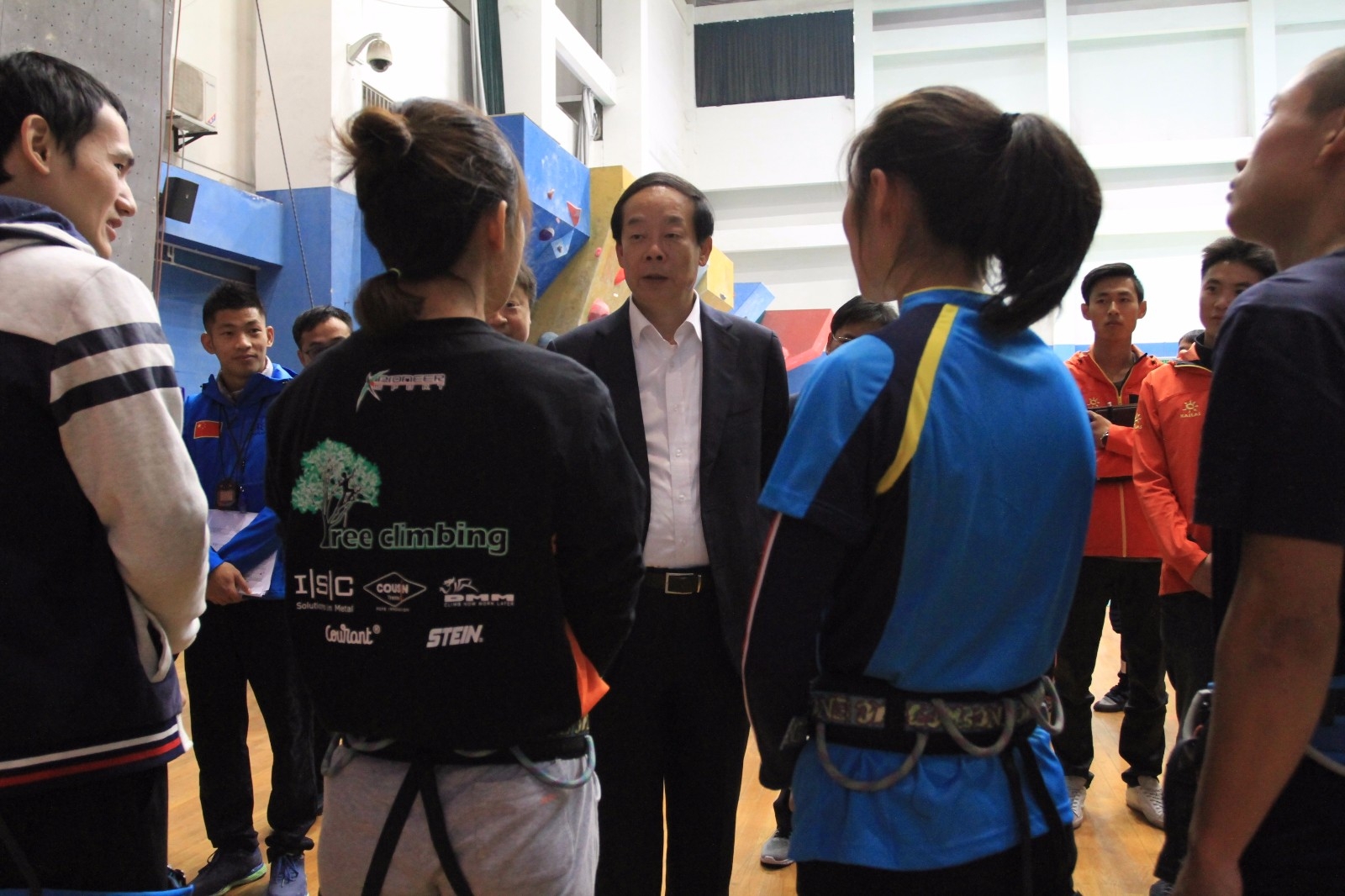 在座谈会上,赵勇给运动员们提出了几点希望:一是要有一颗红心。十九大规划了我国未来全面建设社会主义现代化强国的宏伟蓝图,到2050年要建成一个社会主义现代化强国,要当世界第一,超过美国。攀岩作为首次进奥运项目,各个国家的基础并不是很好,完全可以走一条跨越的路子,在东京奥运会上战胜我们所有的对手,拿到金牌,我们应该有这样的雄心壮志。二是要有一种中华体育的精神,顽强拼搏,攀登高峰的攀岩精神。三是要有一套方法。改变过去的常规训练方法,用复合型团队和现代科技,科学高效地训练。只有掌握了这套方法,无论是今后当运动员还是当老师、教练,都具有革命性意义。四是希望有一份收获。在你们当中,无论最终能否代表国家队参赛,但作为改革的成功者,希望大家收获到精彩的人生,国家体育总局将全力做你们坚强的后盾。(竞体处、社体中心、宣传信息中心)