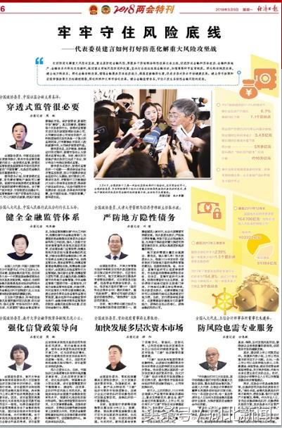 今天,《经济日报》两会特刊发表文章《牢牢守住风险底线——代表委员建言如何打好防范化解重大风险攻坚战》。在鄂全国人大代表、中国人民银行武汉分行行长王玉玲接受采访表示,总体看,我国金融风险可控,但当前和今后一个时期我国金融领域尚处在风险易发高发期,需要健全金融监管体系。一起来看详细内容。