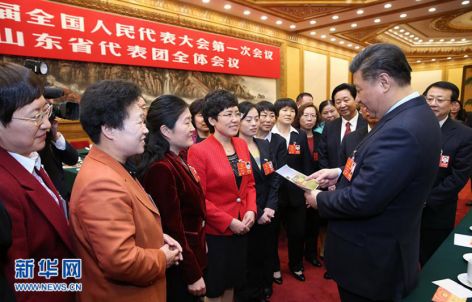 ——2018年3月8日,参加全国人大山东代表团的审议