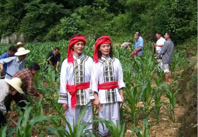 图为:“土苗兄妹”组合,左二为王爱民。