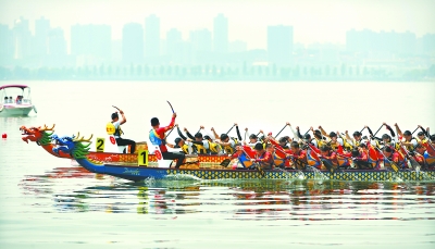 在200米、500米和800米的3个项目比拼中,武汉警备区民兵龙舟队实力高出一筹,夺得3个项目冠军。