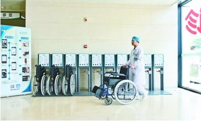 截止到昨天上午,20台共享轮椅试用了5天,每天9点前已经完成了第一个租借轮回,平均每台使用时间2至4小时。20台轮椅24小时内使用次数260次,周转频次较高。袁莉介绍,该院原有10辆普通轮椅,免费租给患者使用,患者只需支付800元押金,有患者将轮椅据为己有,而共享轮椅内部装有芯片,可以定位轮椅的位置,并且与微信个人信用绑定,若超过24小时未还,每天会有短信提醒及时归还,可望避免此前的尴尬。