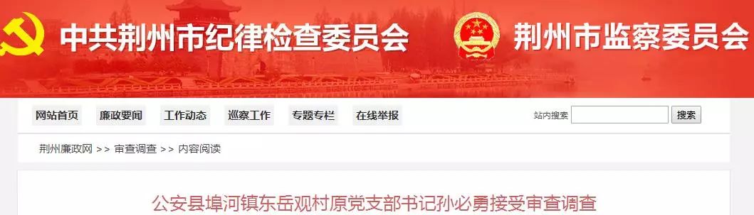 据公安县纪委监委消息:公安县埠河镇东岳观村原党支部书记孙必勇涉嫌严重违纪和职务违法,目前正在接受纪律审查和监察调查,并被采取留置措施。(公安县纪委监委)