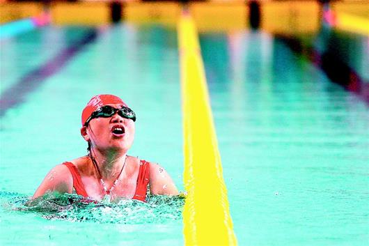 当日,黄石奥体中心游泳馆成为最热闹的比赛地,残疾人组游泳比赛吸引了当地市民的关注。几乎座无虚席的看台上不时响起的“加油”声,使每一名参赛者都很兴奋。作为东道主选手,22岁的朱鹏表现更加出色,在参加的3个项目中拿到了2金1银。