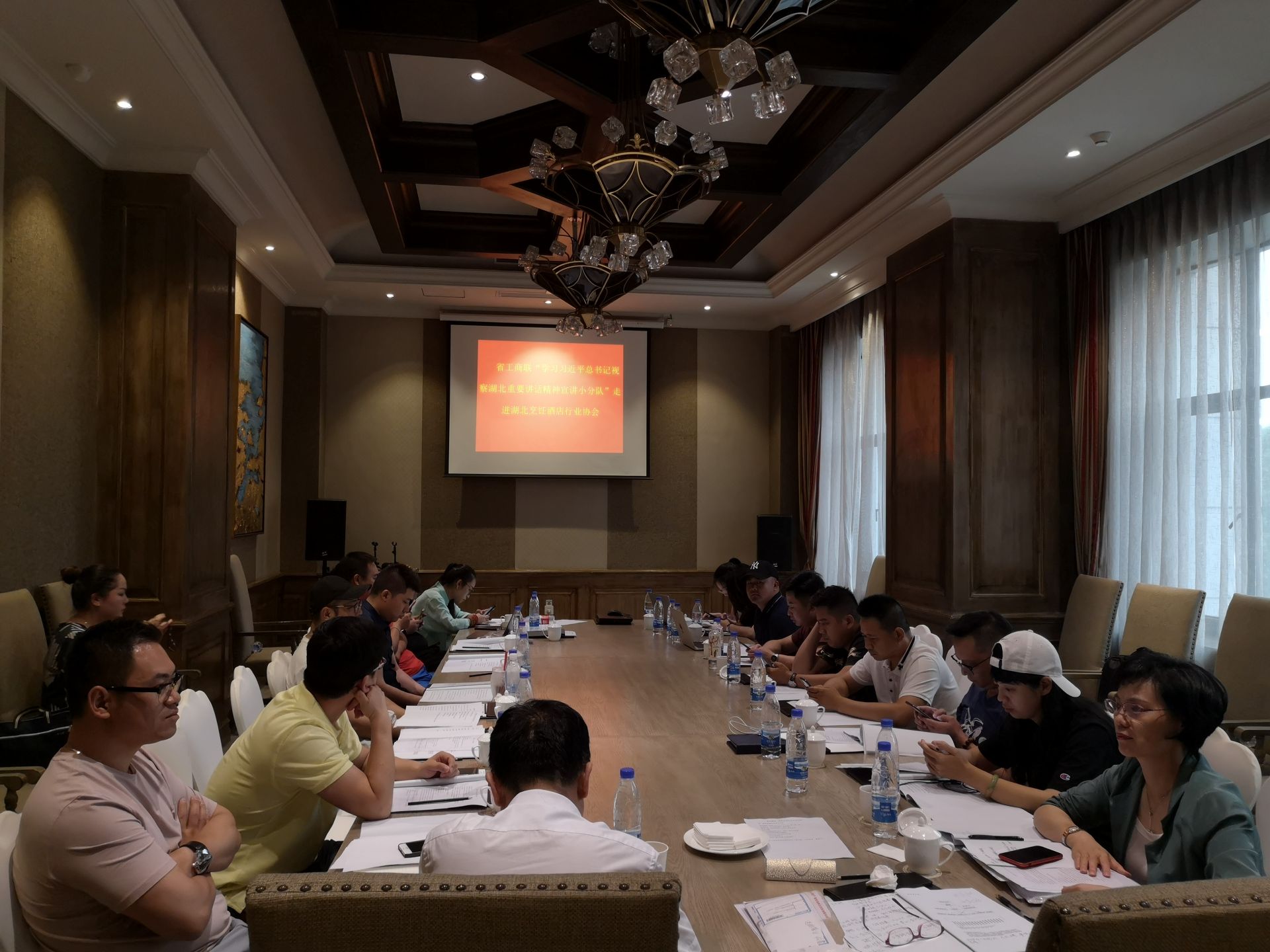 6月5日,省工商联“学习习近平总书记视察湖北重要讲话精神宣讲小分队”走进湖北省烹饪酒店行业协会。省工商联宣教部部长邱从军围绕习近平总书记视察湖北时的重要讲话精神,省委关于学习贯彻习近平总书记视察湖北重要讲话精神奋力谱写新时代湖北高质量发展新篇章的决定,“一个新篇章”、“四个切实”带来的新机遇等方面进行学习宣讲。宣讲结束后,湖北省烹饪酒店行业协会青年创业委员会代表表示,要把学习宣传贯彻习近平总书记讲话精神作为当前的头等大事来抓,求真务实、真抓实干,牢记习近平总书记视察湖北时的殷殷嘱托,弘扬创业精神,争做年轻典范,要感恩奋进跟党走,做政治上有方向的新时代企业家;要砥砺奋斗再出发,做发展上有本事的新时代企业家;要致富思源不忘本,做责任上有担当的新时代企业家,以昂扬的精神和奋斗的姿态,奋力谱写新时代湖北非公经济发展新篇章。