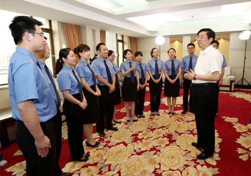 本网讯(通讯员 古伟兵 章森 摄影 谭明)8月1日下午,湖北省检察院党组书记、检察长王晋看望慰问正在紧张备战"首届湖北省公诉人与律师电视论辩赛"决赛的检察机关选手。