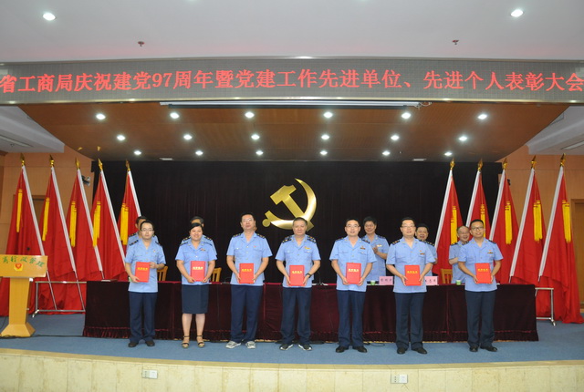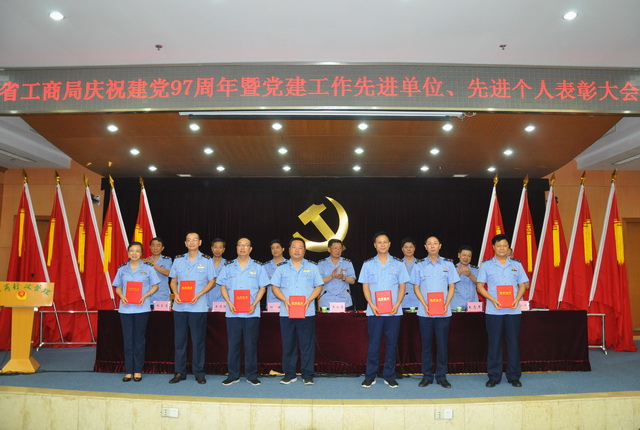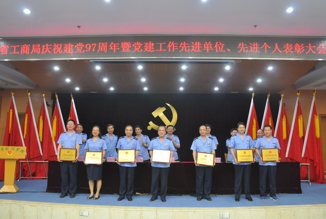 6月29日下午,省工商局召开庆祝建党97周年暨党建工作先进单位、先进个人表彰大会。省局领导,派驻纪检监察组、局机关全体党员干部和部分离退休党员代表参加会议。省局党组成员、副局长、机关党委书记彭明方主持会议。
