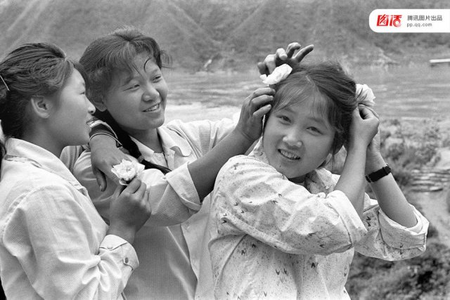 1982 年端午节,湖北省秭归山区的姑娘们,在端午节喜爱采集山上洁白的枝子花戴在头上。新华社记者于澄建摄