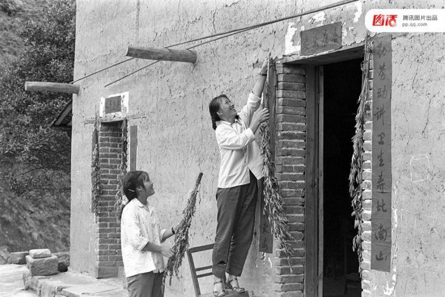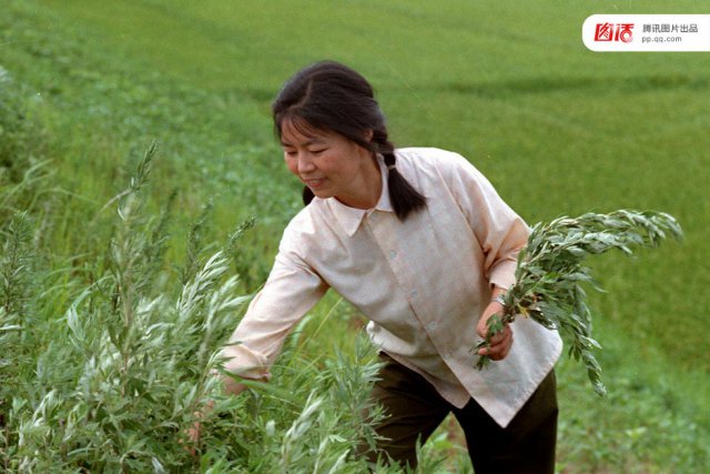1981 年端午节,湖南汨罗,采艾叶是一种民间习俗。每当五月端午节,在门上均挂上一束艾叶,以防虫害。新华社记者王平摄