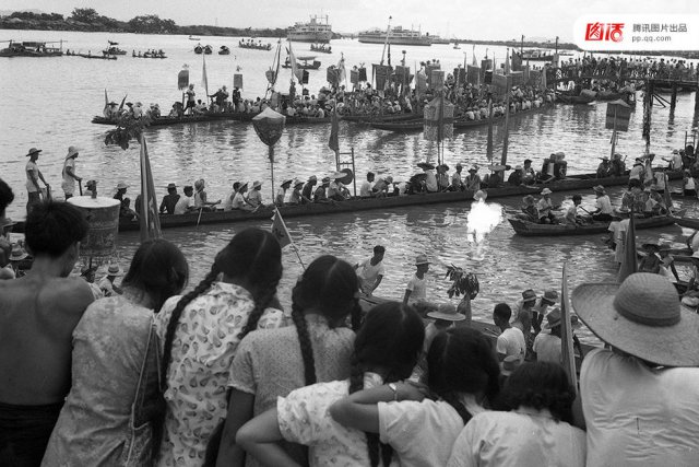 端午节和春节、中秋节、重阳节并称为中国四大传统节日。关于端午节的由来有多种版本,有纪念屈原说、纪念伍子胥说、纪念东汉孝女曹娥说等等,但以纪念屈原的说法流传最广。图为 60 年代,广州市民看龙舟。中新社