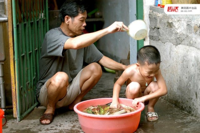 海南万泉河两岸民众有端午节洗 " 龙水 " 的习俗,每年这一天,市民采集艾草、槟榔花等 5 种野草用水浸泡后用于洗澡,以保佑平安。图为 2005 年端午节,海南琼海一位市民正在为孙子洗 " 龙水 "。中新社发 蒙钟德 摄