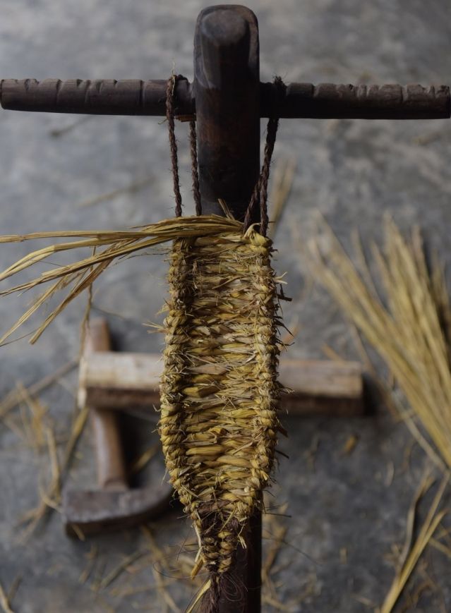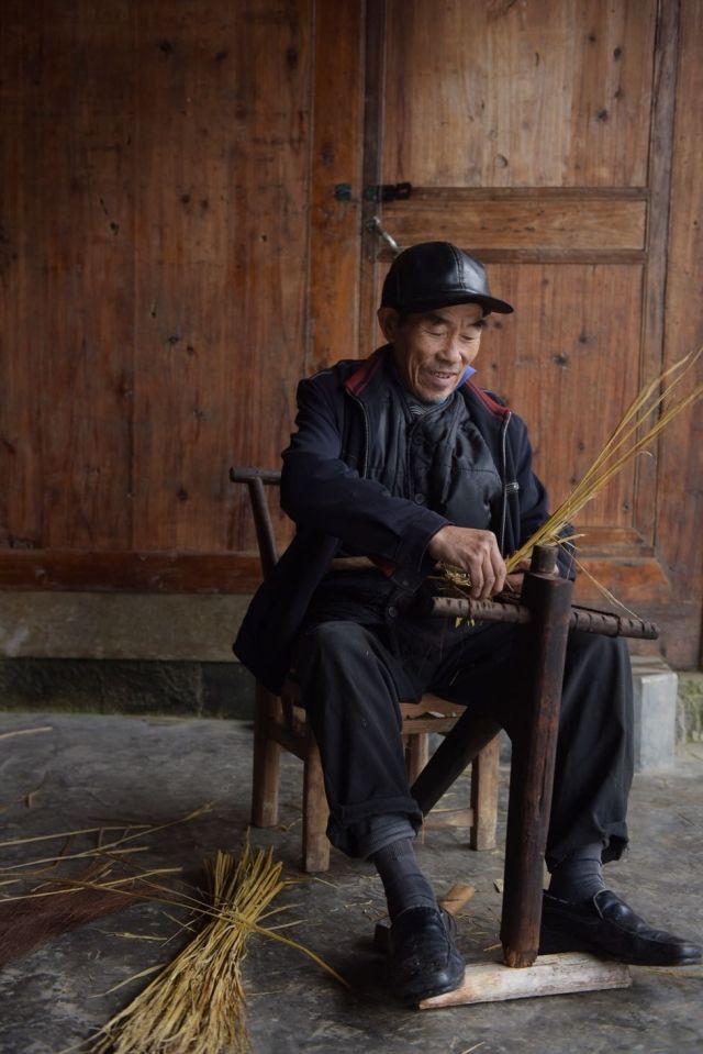 照片中这位精神抖擞的老人名叫张南庭,是宣恩珠山镇大坝沟村的一名普通农民,他制作草鞋一般分三步:捶稻草、搓草绳、架打鞋,每一步都十分讲究,需要重复繁琐的捶打和编制过程。