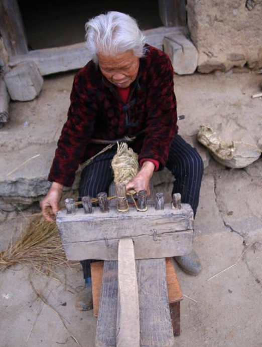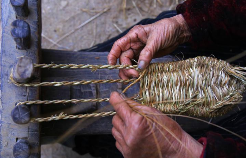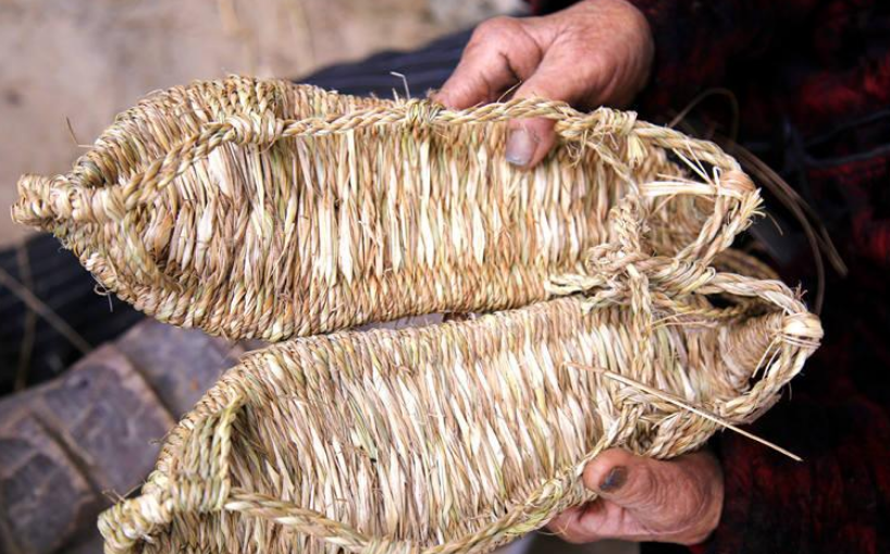 传统手工制作草鞋需要木制耙子、扳子、坐板等辅助工具完成,手编草鞋穿上有防滑、耐磨等特性,在物资匮乏年代,曾是湖北省十堰市郧阳区当地农民劳作时的必需品,通常由龙须草、棕丝、布条等原材料制成。