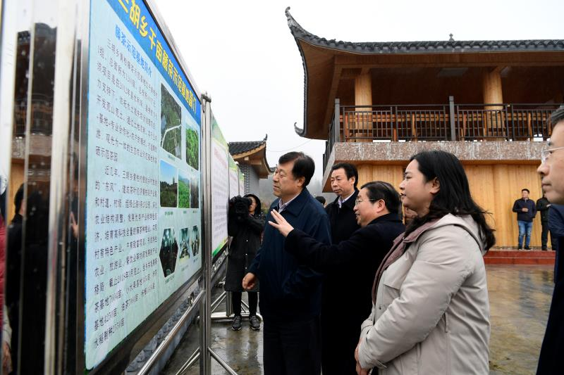 在三胡乡,于康震一行来到黄柏村中蜂养殖基地调研,了解农户养殖中蜂的收益、市场及来凤中蜂养殖产业发展情况,听取有关专家关于中蜂养殖、蜂蜜市场等情况介绍,深入黄柏村藤茶产业基地,实地查看藤茶生长环境,了解目前来凤藤茶种植规模、生产销售、企业发展等情况。