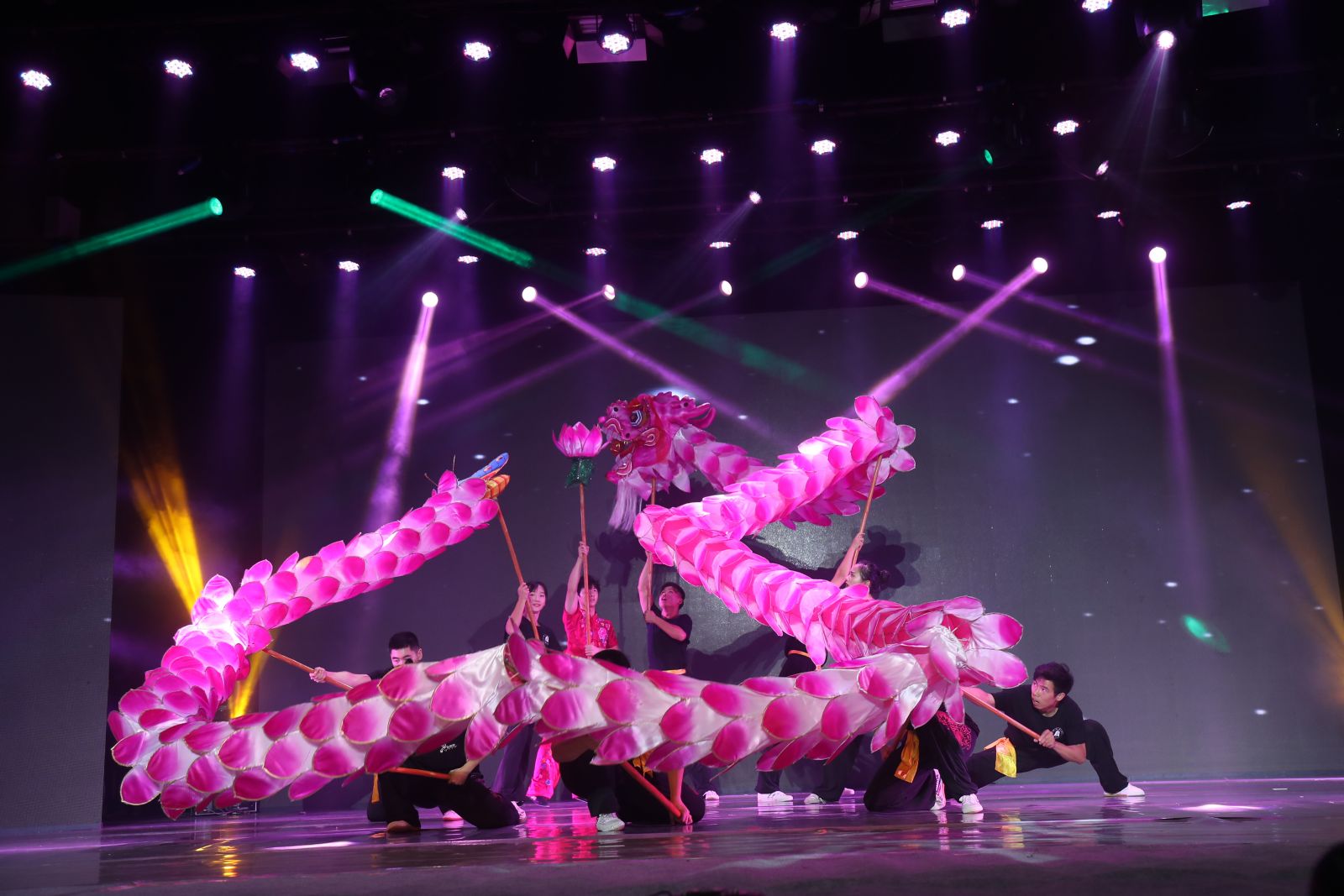 湖北大学龙狮队的“荷花龙”表演《龙耀楚天》拉开晚会序幕。南亚各国留学生带来自己国家的特色节目,形式多样,引来观众阵阵欢呼喝彩声。尼泊尔现代民间舞蹈《Reflection of Nepalese Culture》描述男孩与女孩对爱的理解,孟加拉国一家三口带来歌曲《Folk Song of Bangaldesh》传递欢乐,巴基斯坦舞蹈《Pashto attan dance》抓人眼球,身着绚丽闪耀服装的印度少女带来舞蹈《The Bolly Wood Nation》,斯里兰卡舞蹈《Ayubowan Sri Lanka》以传统方式欢迎大家并祝大家长寿,老挝舞蹈表演《欢乐乞雨》记录生活中的快乐时光。由九位哈萨克斯坦留学生带来的《经典咏流传:三字经》,将诗歌与流行旋律相结合,并融入书法,台下爆发出一阵又一阵热烈的掌声。