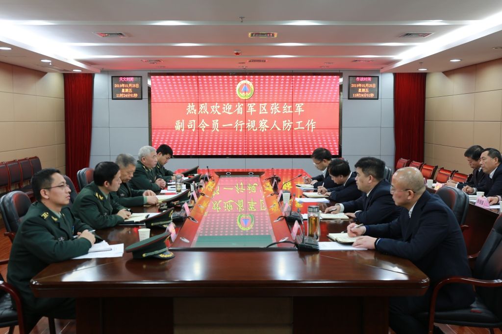 1月25日,省军区副司令员张红军、省军区动员局局长王耀球率领省军区动员局工作组一行5人到省人防办进行考核调研。张红军副司令员一行观看了湖北人防十三五建设成果专题片,听取了省人防办主任许晓金关于全省人防2018年度工作情况的汇报,重点考核了省人防办国防动员工作和后备力量建设情况。省人防办全体班子成员和各处室负责人陪同调研。