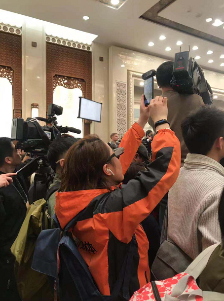从湖北广电融媒体新闻中心记者前方传回来的图片和视频可以看到,现场人气爆棚,不少记者都使出“浑身解数”,不仅有常见的梯子、长枪短炮,还带来了不少黑科技。