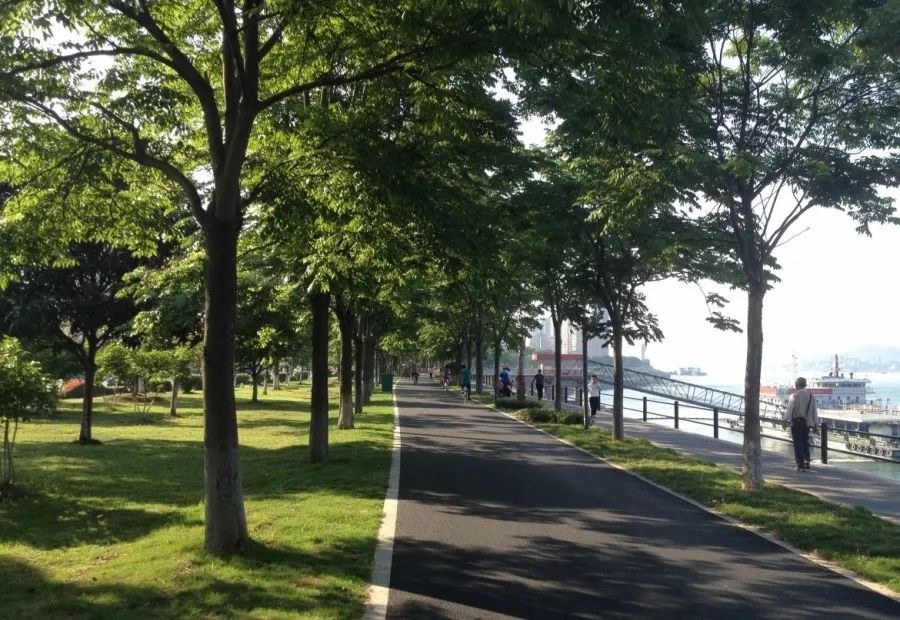 滨江绿道,横卧在长江江畔,是一条依街傍水的风景道。大部分市民都喜欢选择这条路线,先后经过铁路长江大桥、天然塔、新外滩大楼、万达广场、三峡游客中心、夷陵长江大桥、滨江公园、镇江阁、葛洲坝公园。沿路骑行,白天迎着习习江风,看绿树辉映,花团锦簇,隔岸青山若隐若现;夜晚伴着华灯初上,赏五彩霓虹,满江璀璨,又是另一番味道。