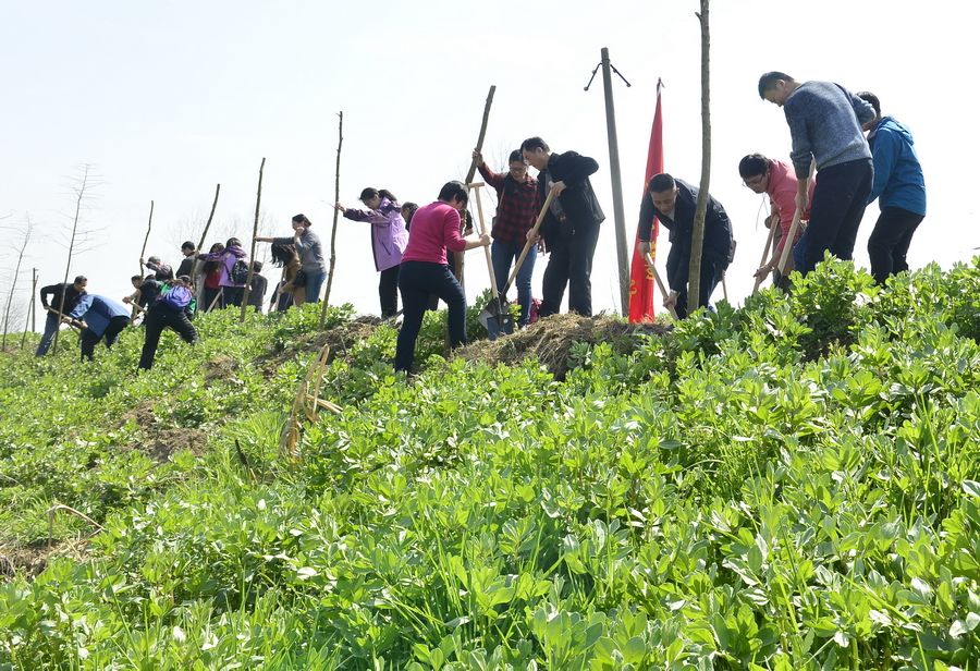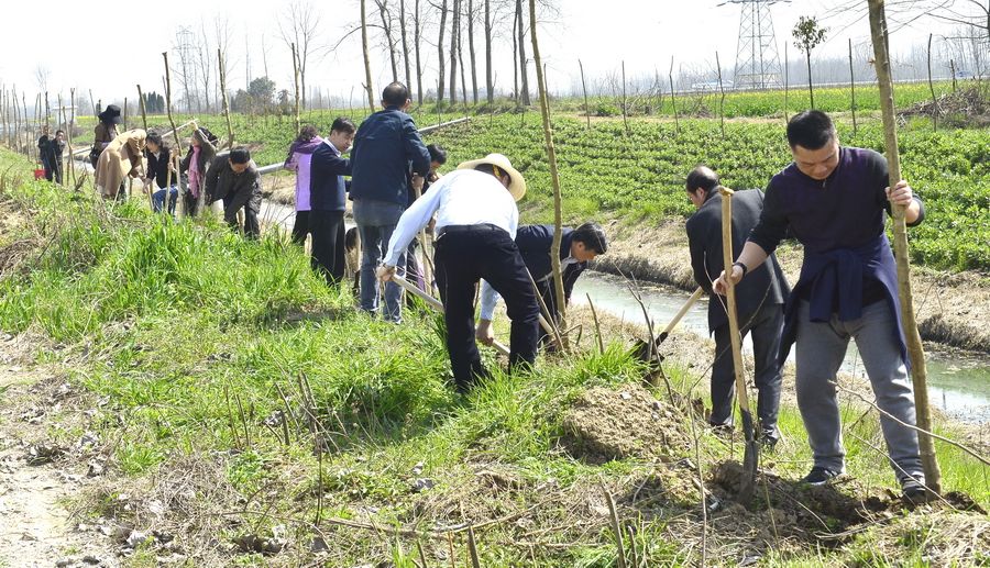3月11日,湖北省委老干部局干部职工再次来到精准扶贫点仙桃市中洲村,帮助该村植树造绿,助力美丽乡村建设。