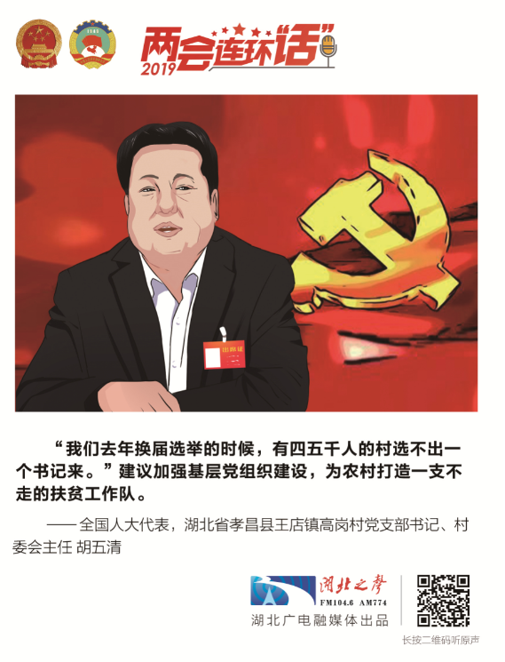 “我们去年换届选举的时候,有四五千人的村选不出一个书记来。”建议加强基层党组织建设,为农村打造一支不走的扶贫工作队。