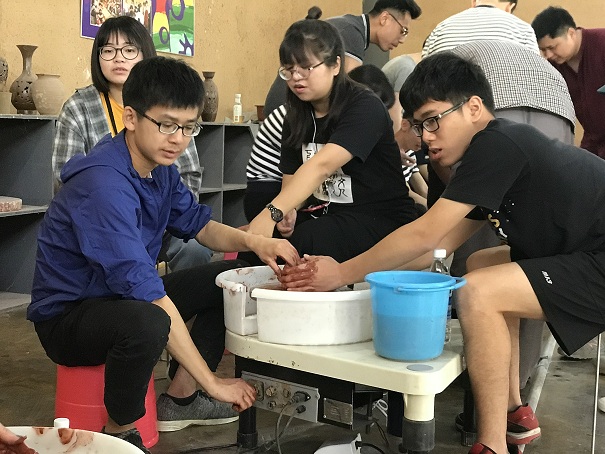 为了加深同学们对当地陶文化的认识,增强交流活动的实质内容,同学们亲身体验了陶器制作的过程。在非遗传承人的耐心教导下,同学们开始慢慢学习如何定“中心”,如何给陶器“开口”,寓教于乐,其乐融融。大家不仅了解到陶器从一块陶泥变成成型陶器的全过程,也亲自参与到制作陶器的过程中,纷纷动手实践,捏出了各式各样自己喜爱的造型。
