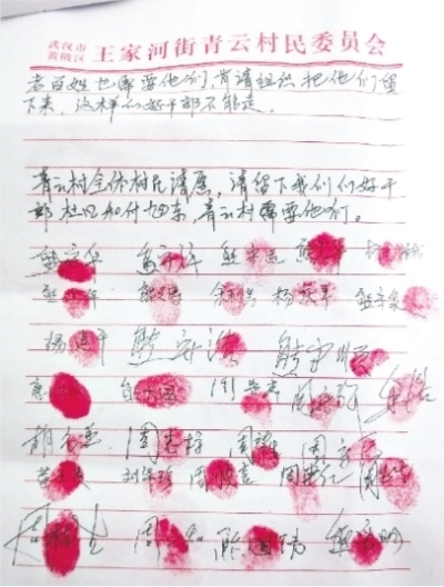 “这事不能耽搁,我们怕递交晚了就来不及了,所以写得很仓促,还有好多事情没有写上去呢!大家都很支持,争先恐后的按了72个红手印,连我76岁的老母亲也不例外。” 熊汉华说。没想到第二天一早下起瓢泼大雨,为了与驻村干部调整工作抢时间,早上6点刚过,村委会主任熊兵、村委会原主任吴先昌、村民代表周志生带着联名信就出发了,“再大的雨我们也不怕,只怕他们调走了。”