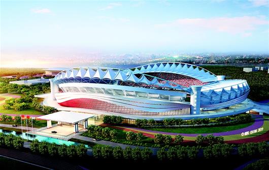 图为:武汉体育中心主体育场改造后效果图。