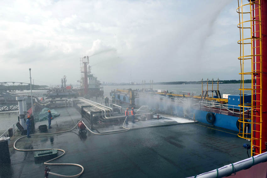 为时30分钟的应急演练,包括卸货(甲苯)过程中泄漏应急处置、初期火灾应急处置、伤员救治应急处置、参演队伍协同作战扑灭火灾等内容。通过演练,强化和提升了港航、海事、消防在港口危险货物装卸作业突发安全事件时协同作战的应急处置能力。