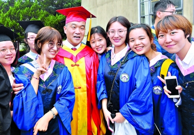 毕业生围着校长窦贤康“求合影” 记者 李子云 摄