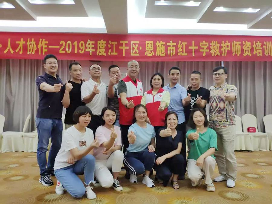 7月5日,二级救护师资培训结束,恩施市选派的12名学员全部通过理论、实际操作试讲考试,顺利取得由杭州市红十字会颁发的《红十字应急救护师资资格证》,成为一名具有正式资格的红十字应急救护知识的传播者。