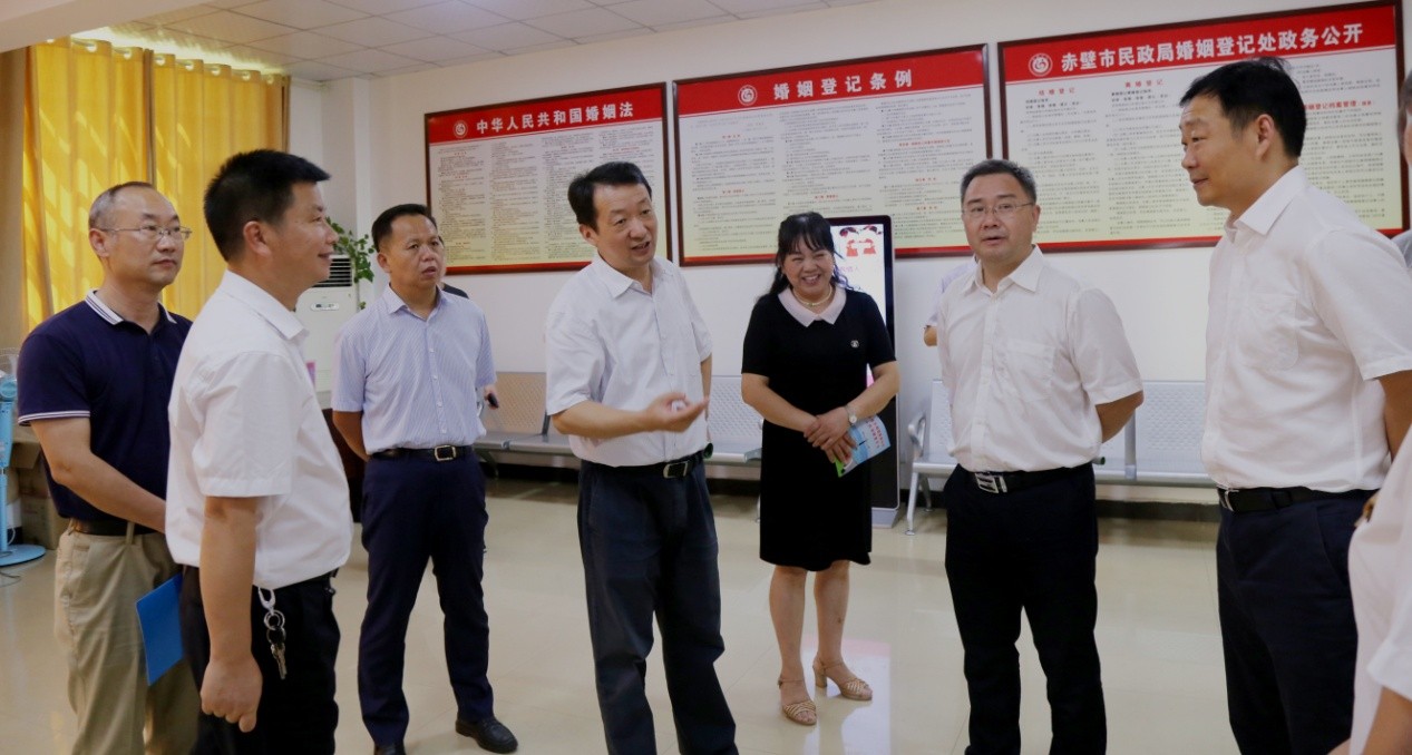 在赤壁市婚姻登记中心,柳望春参观了结婚登记区、候登区、颁证室、离婚室、档案室、家庭矛盾调解中心等,详细了解了家庭矛盾调解等有关情况,对赤壁市开展离婚登记家庭矛盾调解工作给予肯定。他要求,要切实加强婚姻登记规范化、信息化建设,积极贯彻落实婚俗改革,让群众享受更加专业婚姻登记服务。(厅办公室、咸宁市民政局)