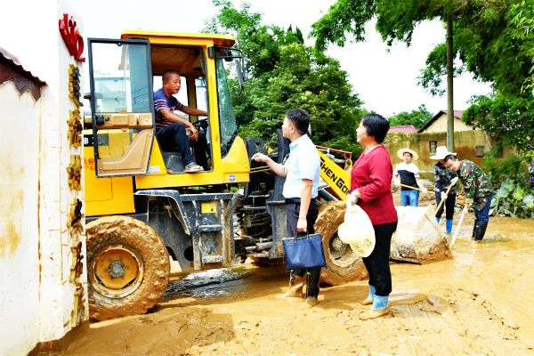 江西省龙南县纪检监察干部蹚水踏泥,走访督查洪灾过后恢复重建工作开展情况,细致排查灾民安置安抚、赈灾物资发放、协助重建家园等方面存在的问题,以严明的纪律为灾后重建保驾护航。