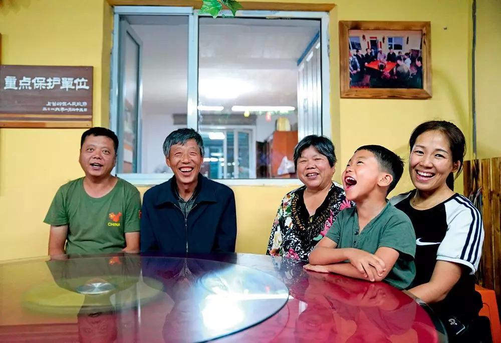 ▲ 林业职工刘养顺(左二)一家在家中合影 王松摄