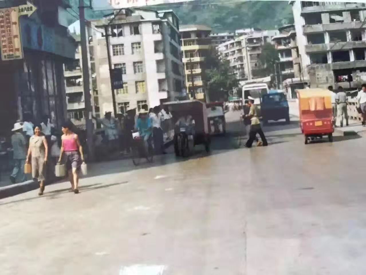 曾经的鹤峰城 白鹤饭店门口(资料图片 鹤峰县档案局提供)