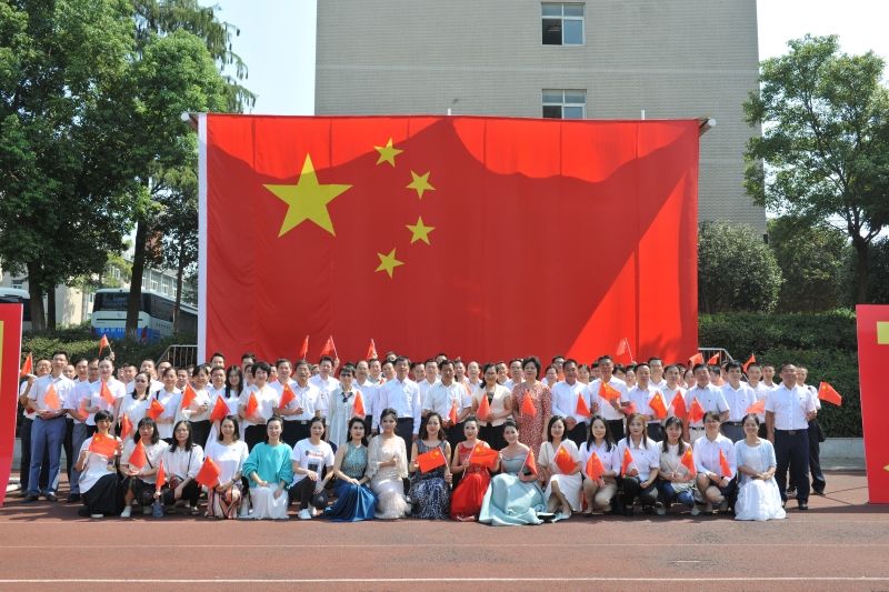 伴随着《我和我的祖国》的旋律,由厅系统干部职工和学校师生组成的三十多个快闪方阵共1500人,挥舞着五星红旗,一起放声高歌,拉开了文艺演出的序幕,操场顿时成了一片红色和欢歌的海洋,接着举行了庄重的规模盛大的升旗仪式。
