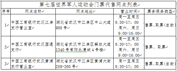 第七届世界军人运动会门票代售网点列表