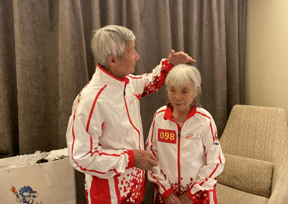 1947年,马旭加入了人民解放军。她与黄继光在同一部队,多次立功受勋,并在战场上结识了爱人颜学庸。武汉军运会让两位老兵充满了自豪,他们还报名成为了军运会的志愿者。