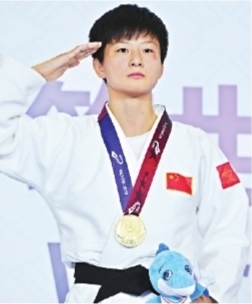 唐婧在女子63公斤级柔道比赛中夺得金牌