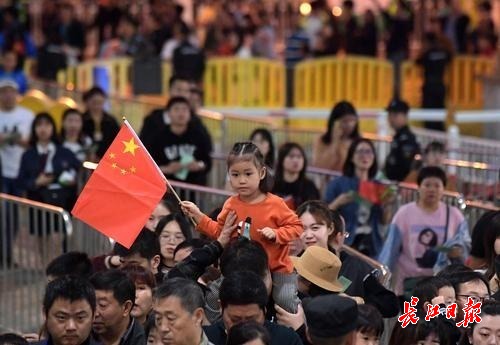 19日晚,洪山体育馆男篮比赛场馆外,观众排起长队入场,为中国队加油。记者刘斌 摄